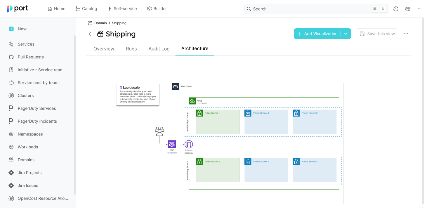 - Display a service's architecture