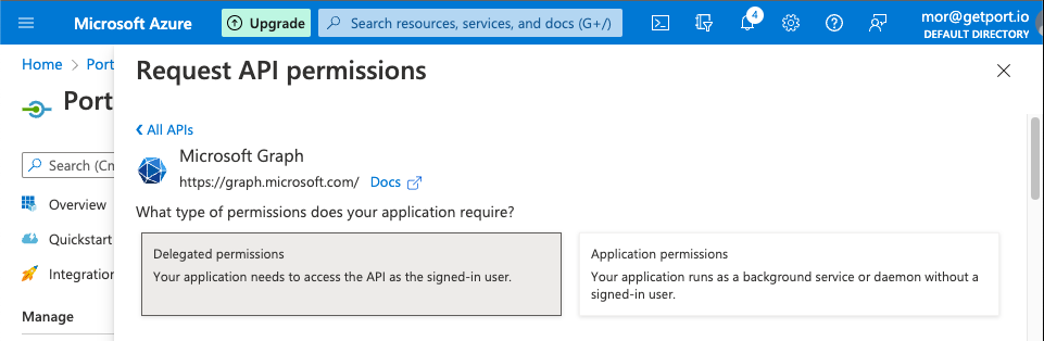 - Users can connect to Port via an AzureAD app.